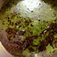 - Heat the oil (see ingredients list for making Sepu Vadi above) in a medium sized pan. Add the bay leaf and then the crushed/pounded spice mix. Sauté for 1 minute Add the sliced tomatoes (if using) and sauté for 1 minute Add the turmeric and chilli powders, sauté for 30 seconds.